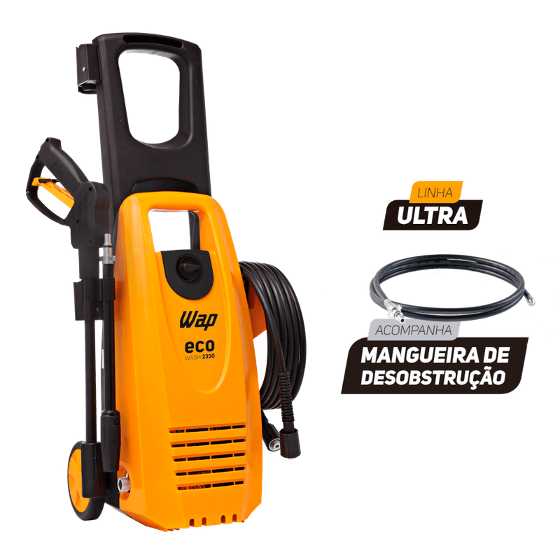 A Desobstruidora WAP ECO WASH ULTRA 2350 é uma Máquina prática e econômica para o dia a dia, além de desentupir canos, calhas e tubulações com facilidade utilizando jato de água! Potência, praticidade e economia são os conceitos reunidos na Desobstruidora e Lavadora de Alta Pressão WAP Eco Wash ULTRA 2350, o equipamento perfeito para a remoção de níveis incrustados de sujeira em pisos e superfícies de até 150m². É ideal para lavar calçadas, bicicletas, motos, carros e paredes com pressão, rapidez e agilidade, além de economizar até 80% de água se comparada à mangueira comum.