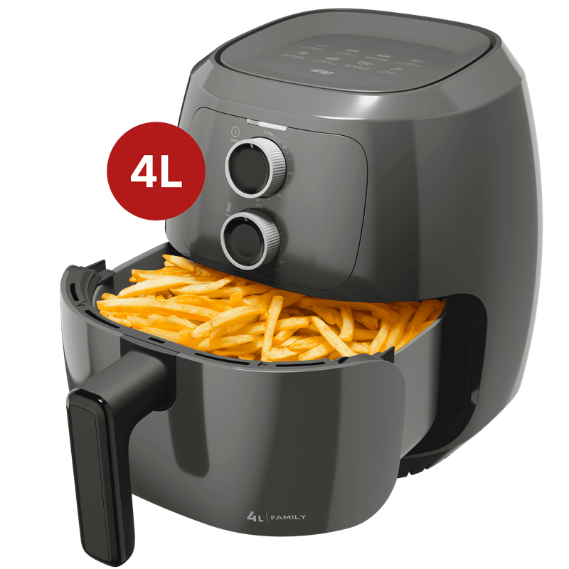 Descubra uma maneira mais saudável e prática de cozinhar com a air fryer 4L. Frite, asse, desidrate ou toste seus alimentos favoritos sem a necessidade de óleo ou manteiga. O timer de 60 minutos assegura que suas receitas estejam prontas no tempo certo, enquanto o aviso sonoro indica o término do preparo.