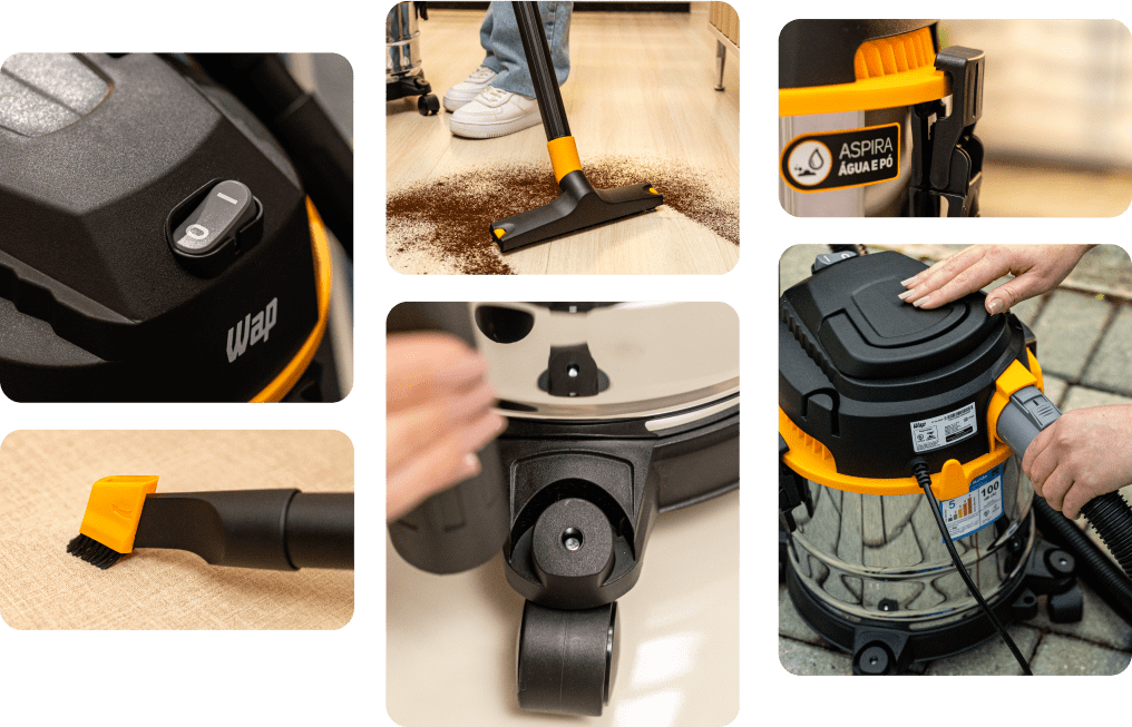 A limpeza pesada dos ambientes internos e externos da sua casa precisa de um aliado potente. Funcional, o aspirador de pó e água WAP é ideal para remover as sujeiras mais difíceis com máximo desempenho para tonar as suas atividades mais práticas.
