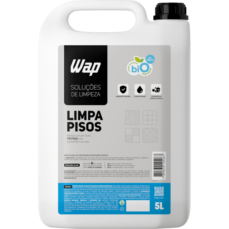 O WAP LIMPA PISOS é um limpador de uso geral, ideal para o dia a dia e indicado para porcelanatos, vinílicos, madeiras, cerâmicas e outras superfícies laváveis. Ele pode ser utilizado junto aos Mop da WAP, conferindo um resultado completo de limpeza, além de perfumar o ambiente com uma sofisticada fragrância de cereja e avelã.