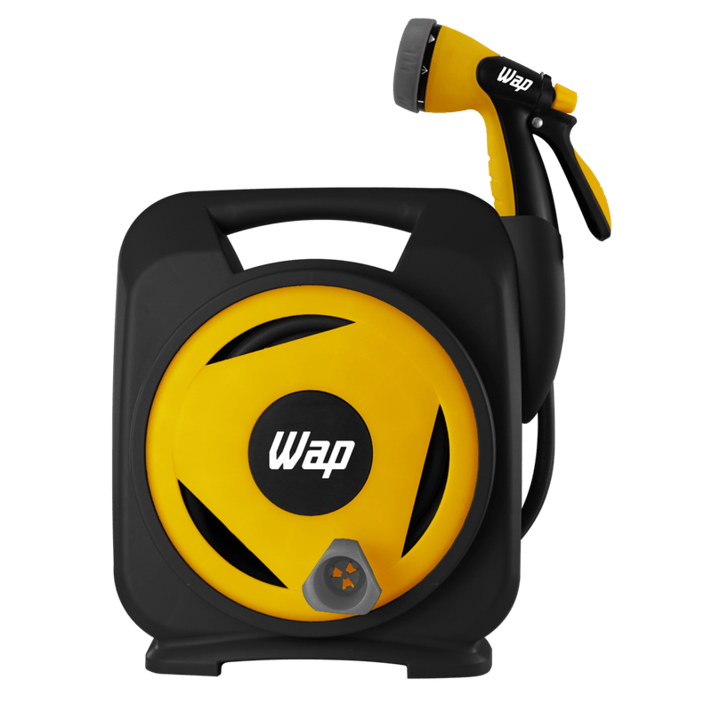Perfeito para quem quer um produto compacto e eficiente, a Mangueira com Enrolador e Esguicho Múltiplo WAP GMEEM01 é ideal para ter no jardim e áreas externas.