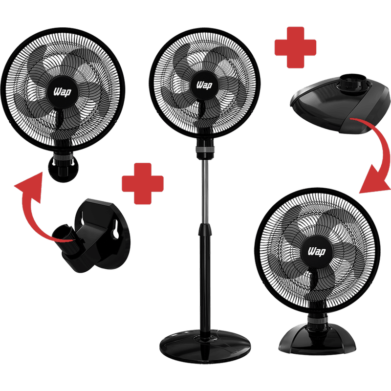 O Ventilador WAP Rajada Turbo W130 3 em 1 com 5 pás e grade de 50 cm, possui um design robusto, potente e baixo nível de ruído. Esse produto exclusivo da WAP consegue ventilar ambientes inteiros com menos consumo de energia e mais economia para o seu bolso.