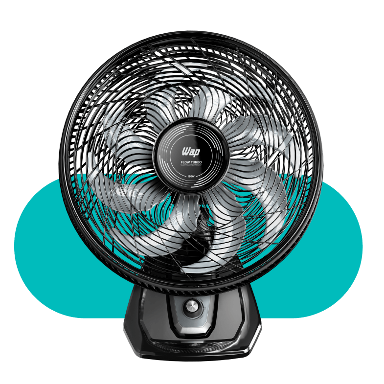 O Wap Flow Turbo 2 em 1, possui 180W de potência com máxima eficiência e com baixo ruído, mantém o ambiente agradável sem fazer barulho, conta com 8 pás trazendo um design aerodinâmico, permitindo grande vazão de ar.