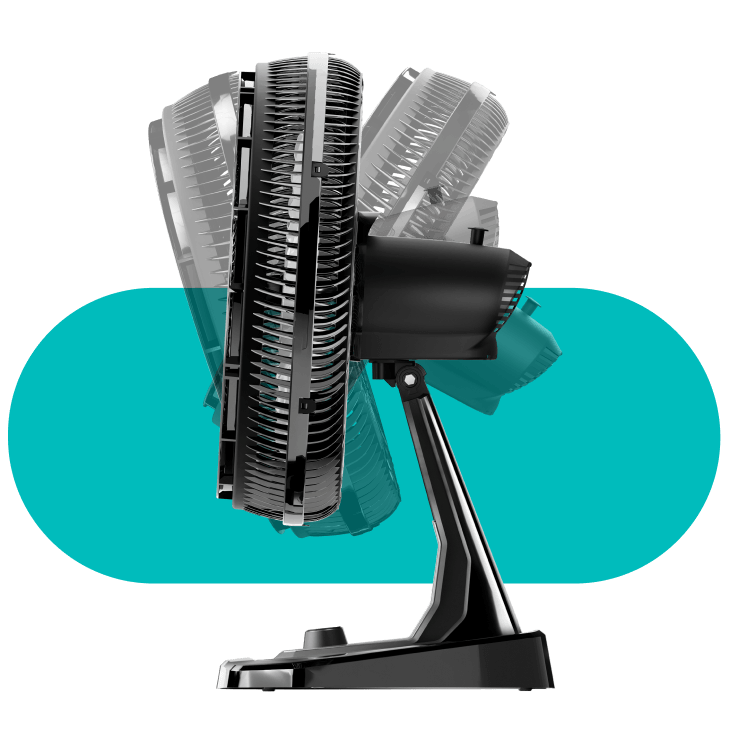 Equipado com um prático botão para ligar, desligar e regular a intensidade do vento. Possui ajuste de inclinação de até 45º e oscilação horizontal de até 90º, permitindo uma melhor distribuição de ar no ambiente.